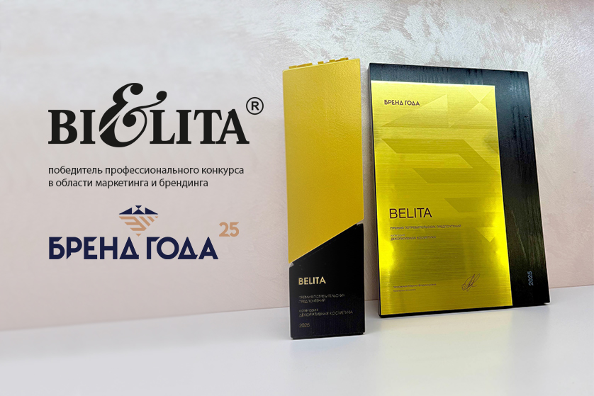 Белита - победитель профессионального конкурса в области маркетинга и брендинга «БРЕНД ГОДА» 2025 в номинациях «Декоративная косметика» и «Уходовая косметика».