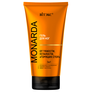 MONARDA ГЕЛЬ для ног ОТ ТЯЖЕСТИ, УСТАЛОСТИ, "ГОРЯЩИХ СТОП" 3в1 c троксерутином, целебным экстрактом монарды